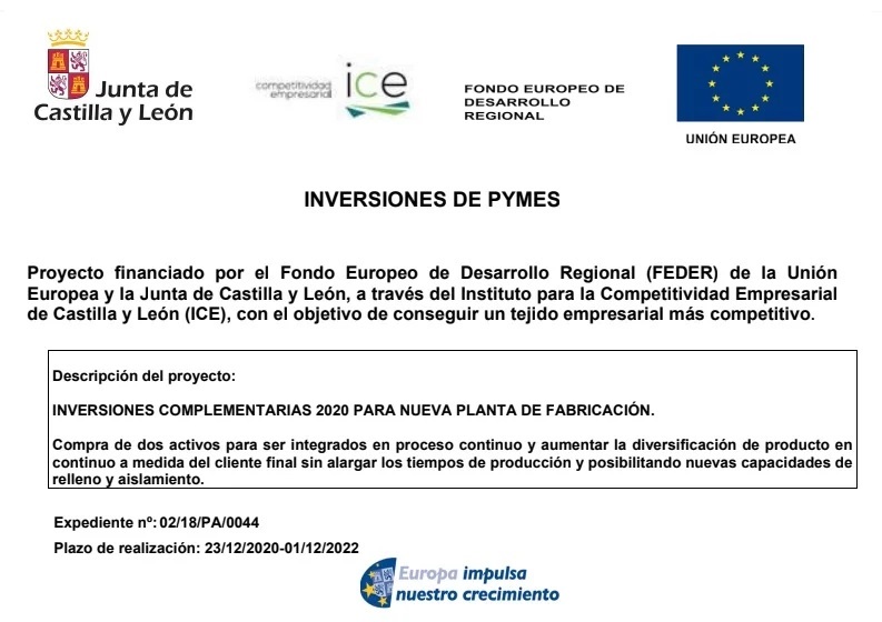 RCI-040000-2017-210 TRASLADO Y AMPLIACIÓN DE PLANTA INDUSTRIAL EL PROYECTO HA RECIBIDO FINANCIACIÓN DEL MINISTERIO, DENTRO DEL PROGRAMA DE REINDUSTRIALIZACIÓN Y FOMENTO DE LA COMPETITIVIDAD INDUSTRIAL